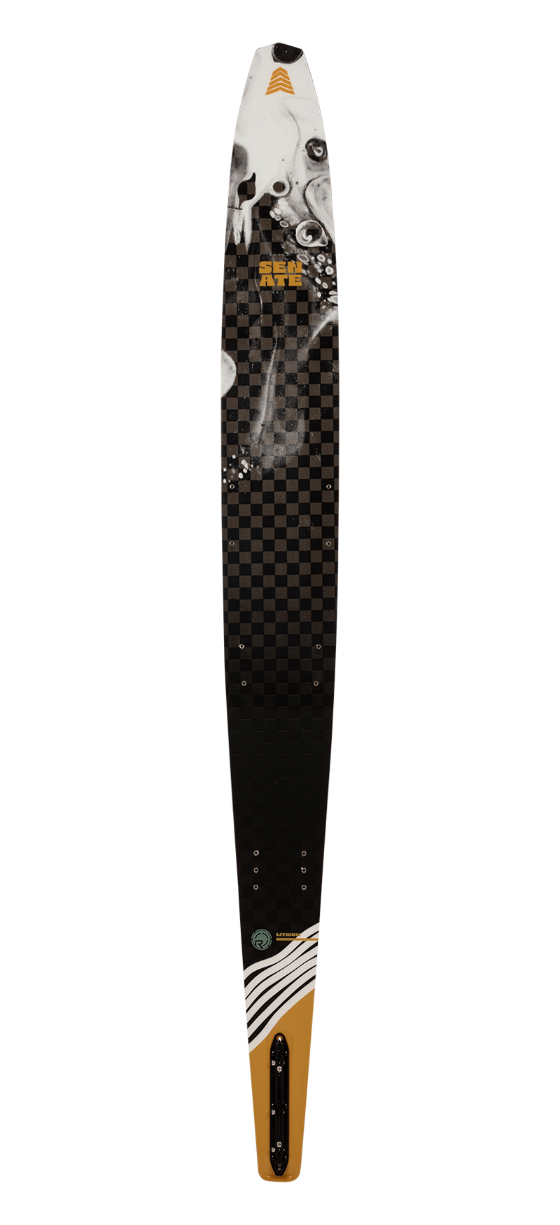 The Senate series pours fuel on your slalom ski fire. Proudly, it is the most widely heralded, highly regarded shape in our line, simply because it works so well across a wide spectrum of skiers. We start with our new Vapor shape and mindfully add two tenths of an inch in extra width between the tunnel and the edge bevel. As opposed to simply scaling the ski wider, this keeps the active wet surface the same as the Vapor, meaning it’s going to turn and grip like a Vapor does. Lightning fast where it needs to be and controlled through the turn, we have found the ideal surface area and shape for flat out performance at slightly slower speeds. From the seasoned veteran looking to get back to their prime, to the 34 MPH competitor looking to conquer new line lengths, the Senate Series has a model that will have you rethinking the limits of your personal waterski goals.